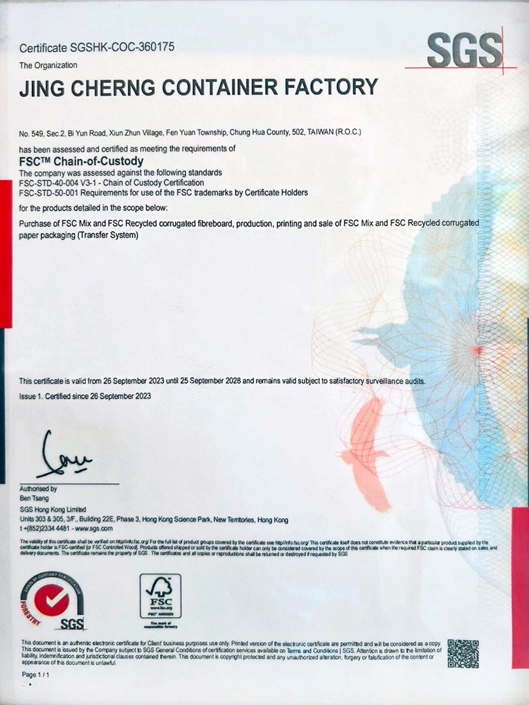 境晟紙器順利取得 SGS 核發的 FSC 正式證書