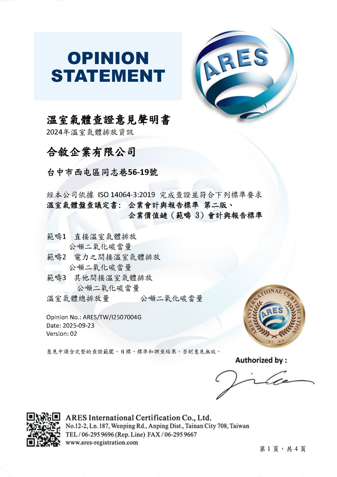 ▲恭喜合敘取得 GHG Protocol 證書
