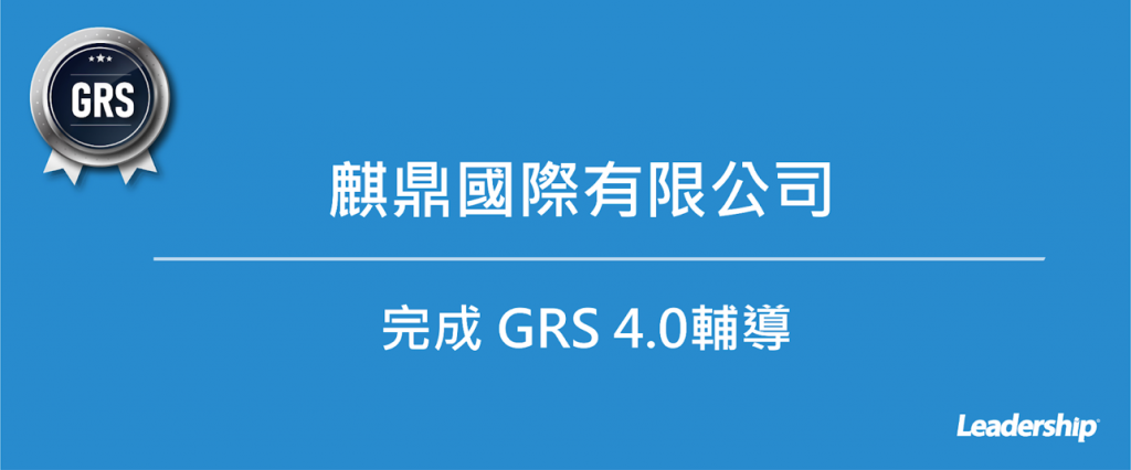 在領導力企管專業顧問輔導下,麒鼎國際有限公司已順利完成 GRS 4.0 全球回收標準(Global Recycled Standard)輔導課程。