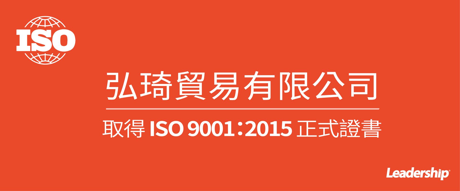 在領導力企管專業顧問輔導下,弘琦貿易有限公司 已順利完成 ISO 9001新版品質管理系統(ISO 9001 :2015 Quality Management Systems)教育訓練(Training)、系統建置(Implementing)、外部稽核驗證(Certification)3 大實施流程,並且取得 ISO 9001 :2015 品質管理系統新版證書。