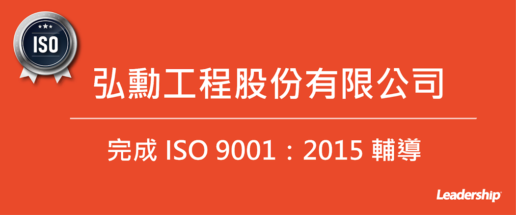 在領導力企管專業顧問輔導下,弘勳工程股份有限公司 已順利完成 ISO 9001:2015新版品質管理系統(Quality management systems)教育訓練(Training)、系統建置(Implementing)輔導。