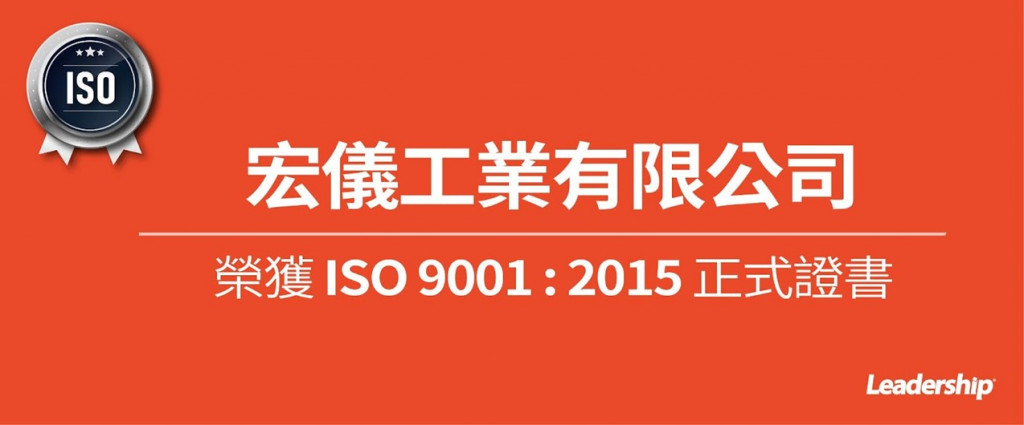 在領導力企管專業顧問輔導下,宏儀工業有限公司 已順利完成 ISO 9001 :2015 系統(ISO 9001 :2015 Quality Management Systems)教育訓練(Training)、系統建置(Implementing)、外部稽核驗證 (Certification)3大實施流程,並順利取得 ISO 9001 :2015 證書。