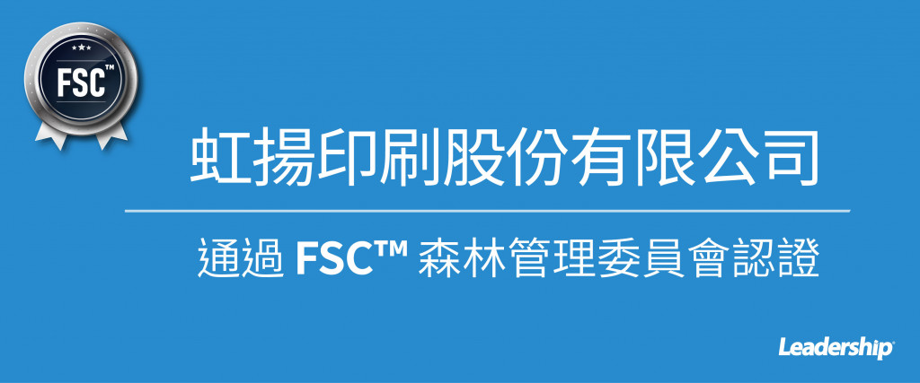 在領導力企管專業團隊顧問輔導下,虹揚印刷股份有限公司順利 完成 FSC™ 森林管理委員會認證(Forest Stewardship Council Certification)教育訓練、系統制度建立、外部稽核驗證,順利通過 SGS 第三方驗證、取得 FSC™ 認證。
