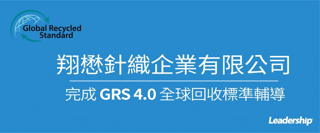 在領導力企管專業顧問輔導下,翔懋針織企業有限公司已順利完成 GRS 4.0 全球回收標準 (Global Recycled Standard) 輔導。