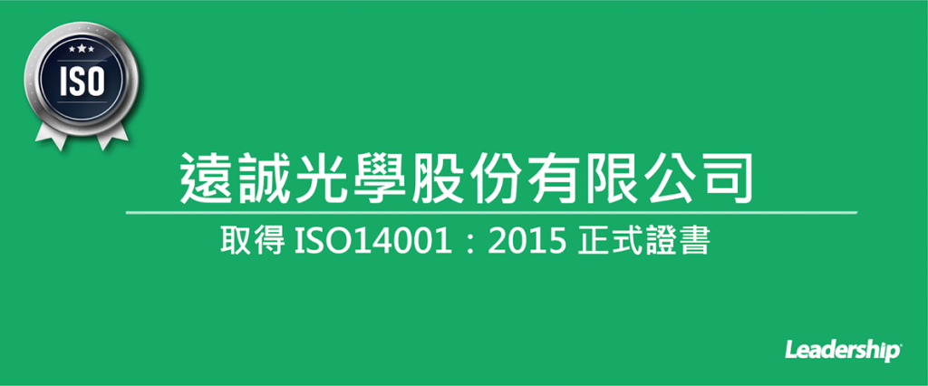 在領導力企管專業顧問輔導下,遠誠光學股份有限公司已順利完成 ISO 14001:2015 環境管理系統 Occupational Health and Safety Management Systems)導入,透過文件盤點(Documented information)、現場稽核(on-site audit)、差異分析(Gap analysis)、教育訓練(Training)、系統建置(Implementing)、外部稽核驗證 (Certification)6大實施流程,並且榮獲 ISO 14001:2015 證書。