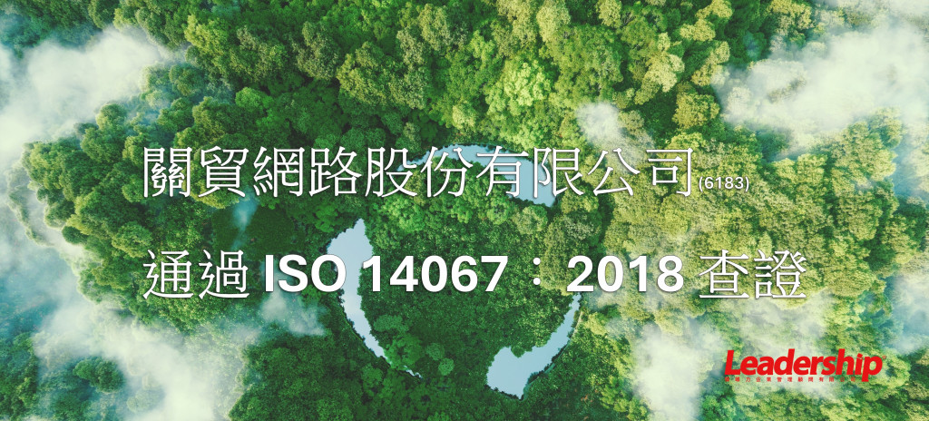 在領導力企業管理顧問有限公司的專業輔導下,關貿網路股份有限公司的「 EZWay 」與「電子發票服務」已順利於通過 ISO 14067:2018 產品碳足跡標準 ( Carbon footprint of products Requirements and guidelines for quantification ),並且取得環境部碳標籤。這成就展示了關貿網路股份有限公司在環境保護與可持續發展方面的高度承諾和積極作為。