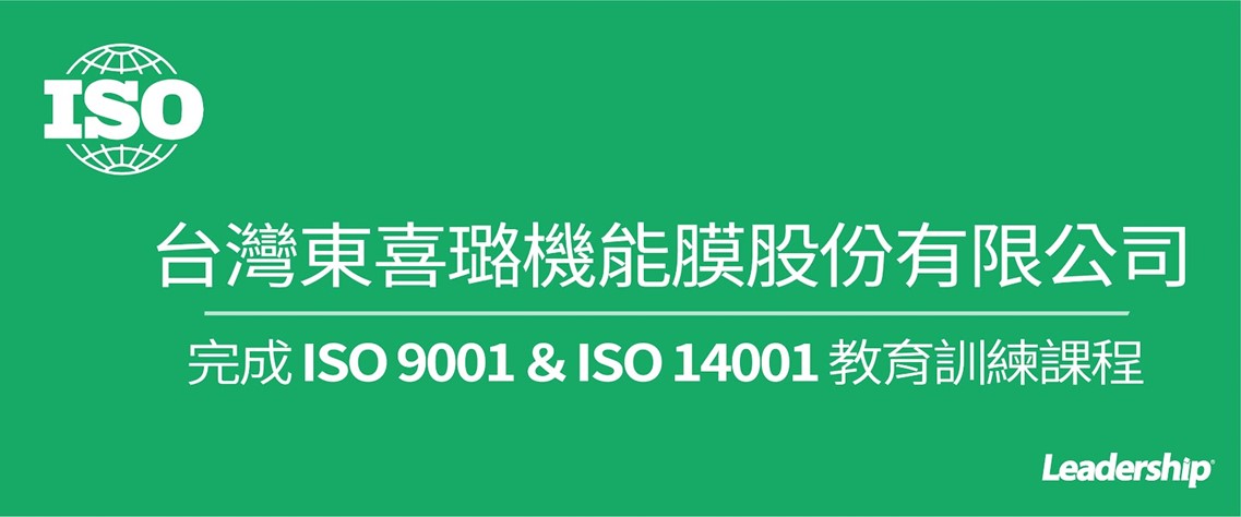 感謝 台灣東喜璐機能膜股份有限公司(日本三井集團)委託領導力企管進行 ISO 9001:2015 & ISO 14001:2015 教育訓練課程(Training),台灣東喜璐重視教育訓練與人才培訓,期望同仁、組織能力都能再提升。