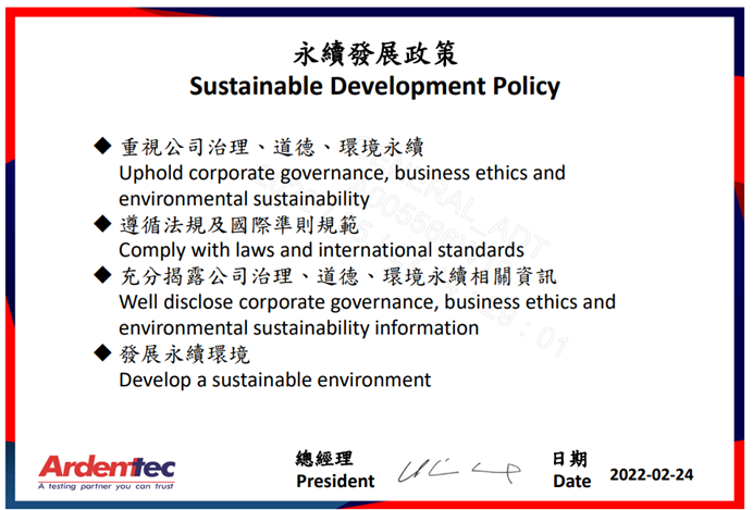 ▲欣銓科技制定永續發展政策,資料來源: