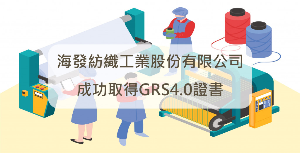 在領導力企管專業顧問輔導下,海發紡織工業股份有限公司(RUTECMILLS INC.)已順利完成 GRS全球回收標準 ( Global Recycled Standard ) 的教育訓練 ( Training ) 、系統建置 ( Implementing )、外部稽核驗證 ( Certification ) 3大實施流程,順利取得 GRS 證書。