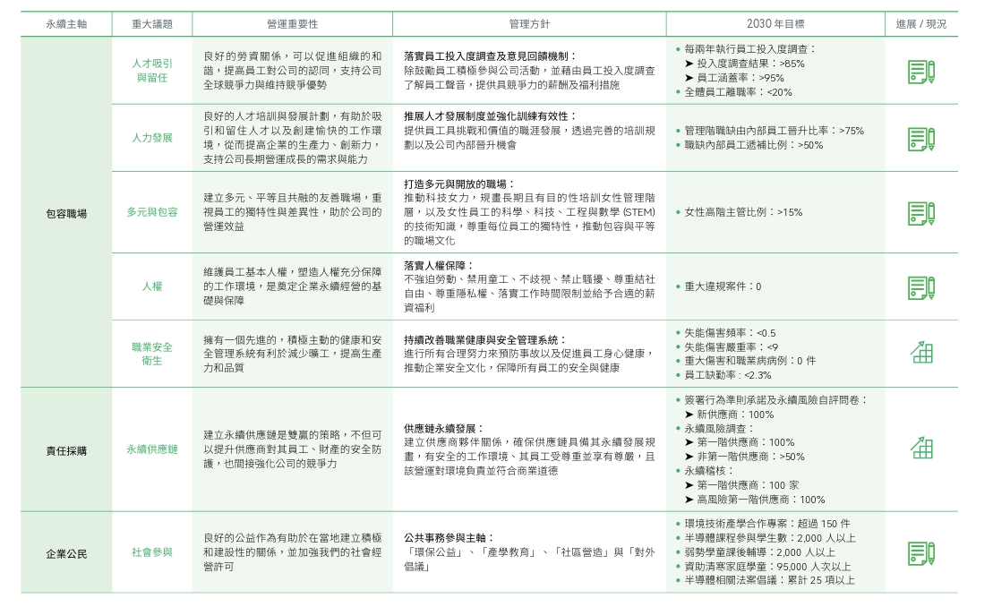 ▲日月光永續發展與人權管理2030年目標(圖片來源: 日月光ESG報告書 )
