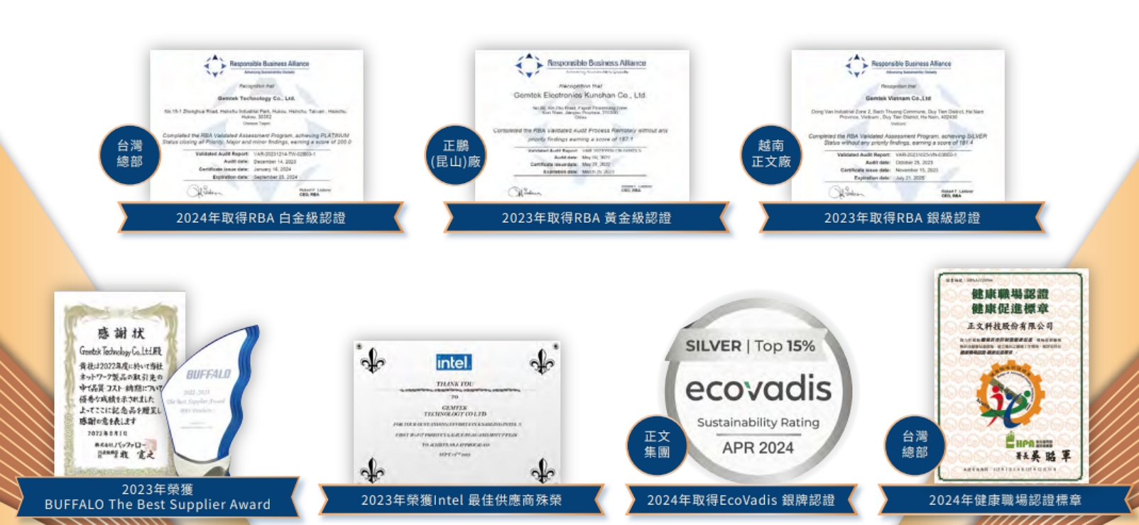 ▲正文科技執行RBA及ESG成績卓越,台灣總部更獲得RBA頂級白金證書,(資料來源: 正文科技ESG報告書 )