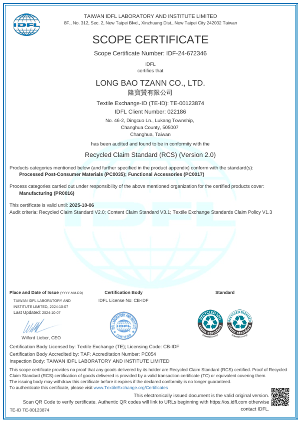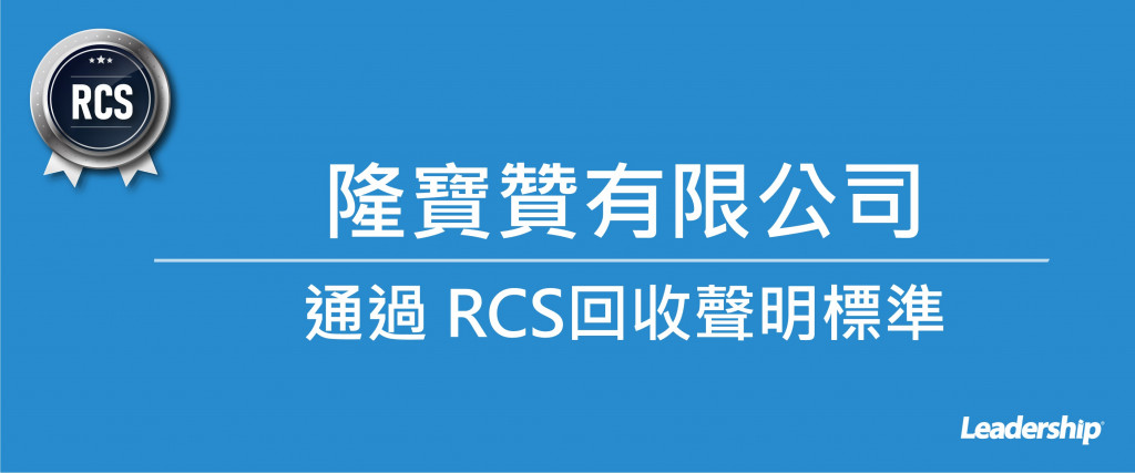 在領導力企業管理顧問公司專業輔導下,恭喜 隆寶贊有限公司 順利完成RCS回收聲明標準 Recycled Claim Standard) 的教育訓練(Training)、系統建置(Implementing)、外部稽核驗證 (Certification)3 大實施流程,並順利取得 RCS 2.0證書。