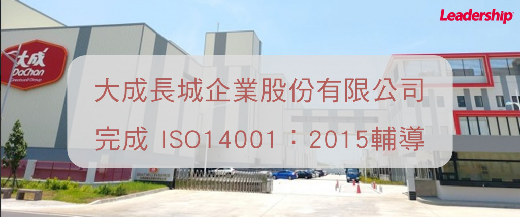 在領導力企管專業顧問輔導下,大成長城企業股份有限公司已順利完成 ISO14001:2015( Nvironmental management systems )教育訓練(Training)、系統建置(Implementing)、外部稽核驗證 (Certification)3大實施流程,,展現對環境管理的高度承諾。