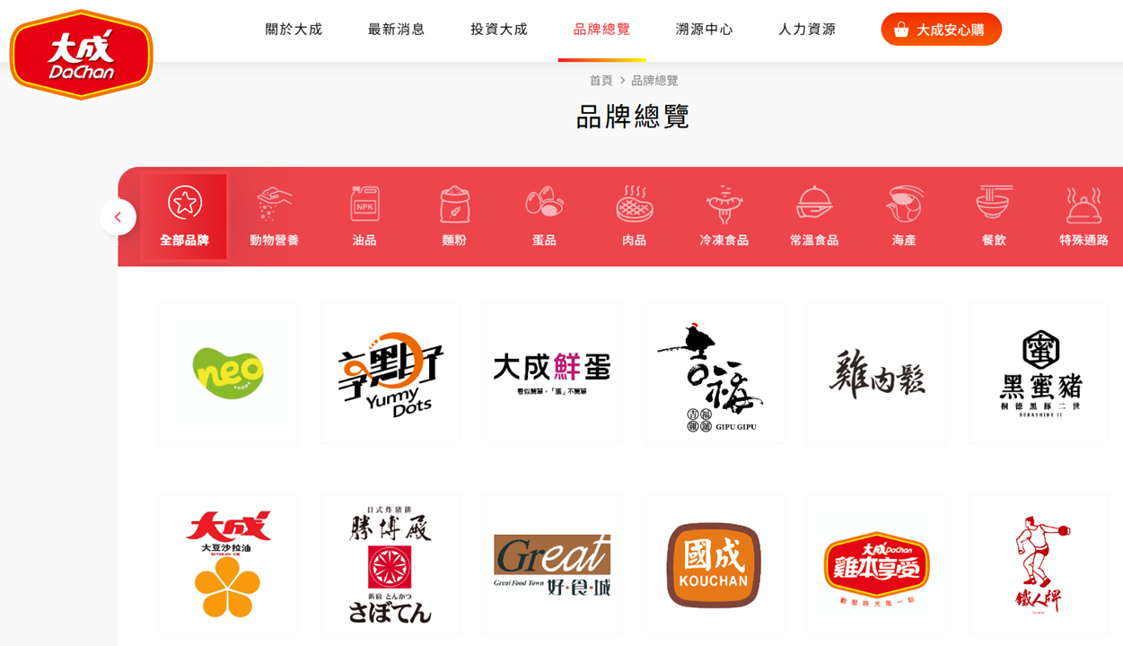 大成集團創立於1957年,初期以豆油與豆餅製造為業,歷經逾六十年深耕與創新,現已發展為橫跨農糧、食品、餐飲服務、物業管理等多元領域的國際企業。秉持「誠信、謙和、前瞻」的企業精神,大成堅守品質承諾,以消費者為核心,提供安心、美味、健康的食品,建立了涵蓋禽畜水產育種、養殖、飼料、生產、加工的垂直整合供應鏈。