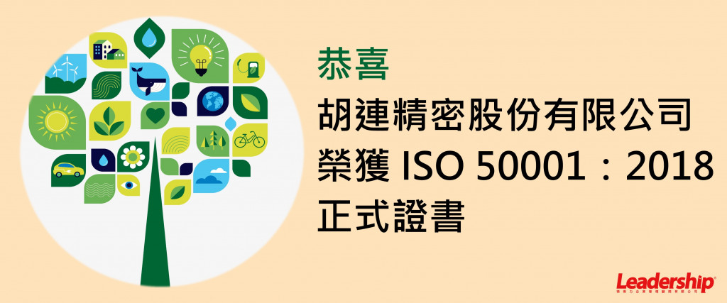 在領導力企管專業顧問輔導下,胡連精密股份有限公司 ( 6279 ) 已順利完成 ISO 50001:2018 能源管理系統( Energy Management Systems ) 的教育訓練( Training )、系統建置( Implementing )、外部稽核驗證 ( Certification )3大實施流程,順利取得能源管理系統證書。