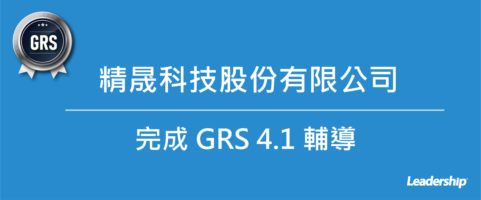在領導力企管專業顧問輔導下,精晟科技股份有限公司已順利完成 GRS 4.1 全球回收標準(Global Recycled Standard)改版輔導。