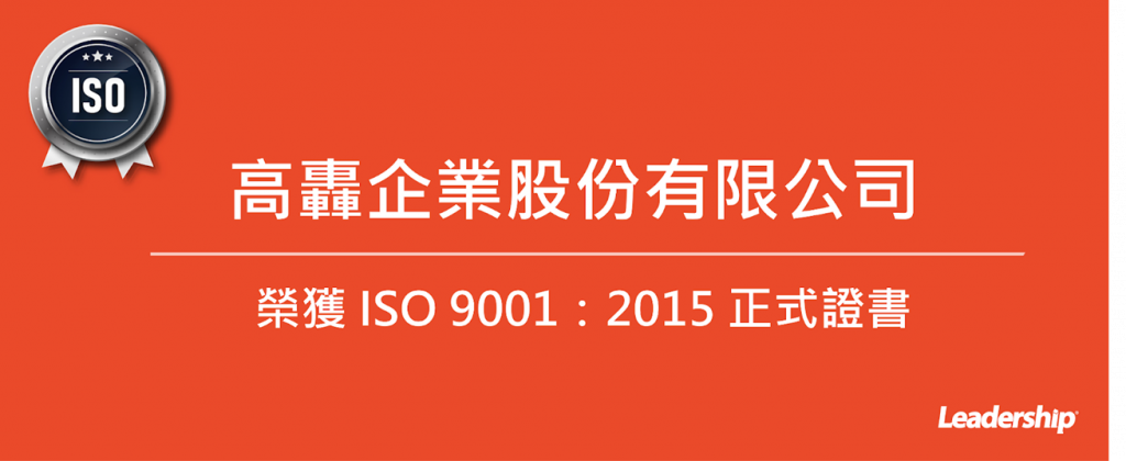 在領導力企管專業顧問輔導下,高轟企業股份有限公司已順利完成 ISO 9001 :2015系統 (ISO 9001 :2015 Quality Management Systems)教育訓練(Training)、系統建置(Implementing)、外部稽核驗證 (Certification)3大實施流程,順利取得 ISO 9001:2015證書。