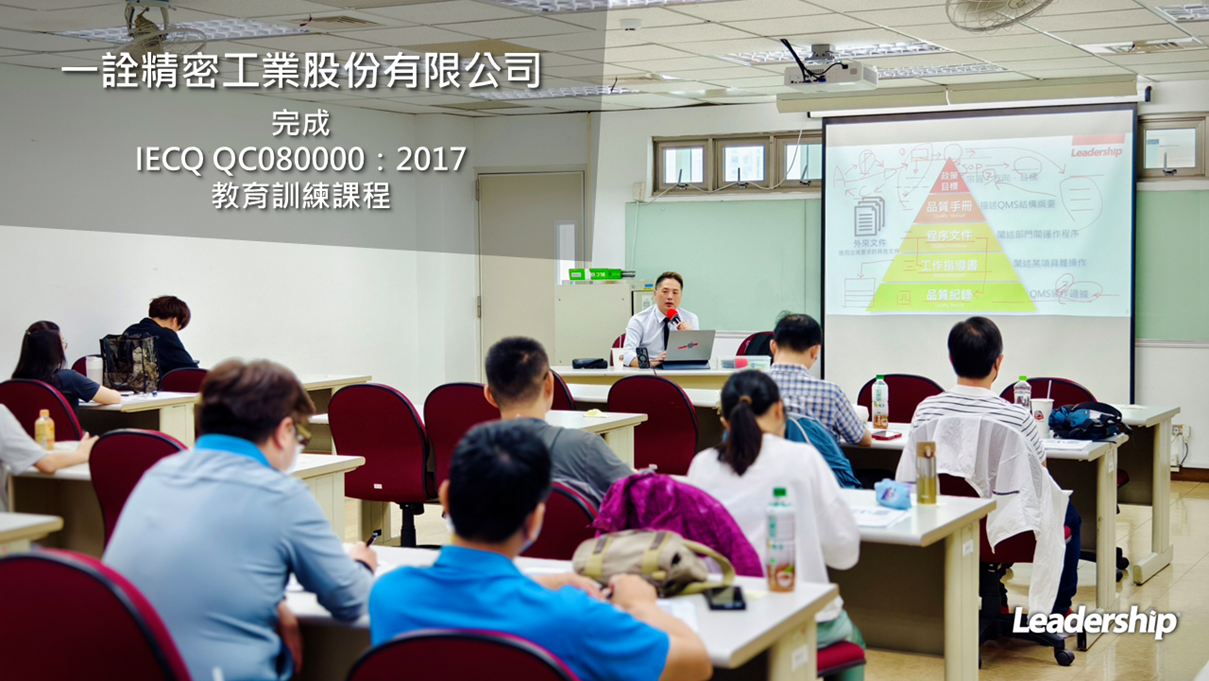 在領導力企管專業顧問團隊的輔導下,一詮精密工業股份有限公司順利完成 IECQ QC 080000:2017教育訓練課程(Training)。透過此課程,一詮公司內部對有害物質管理系統的運作與稽核技巧有了更深入的了解,並學習如何將綠色生產的概念融入日常管理中,有效管理其產品與製程中的有害物質,以符合國際法規與客戶要求。