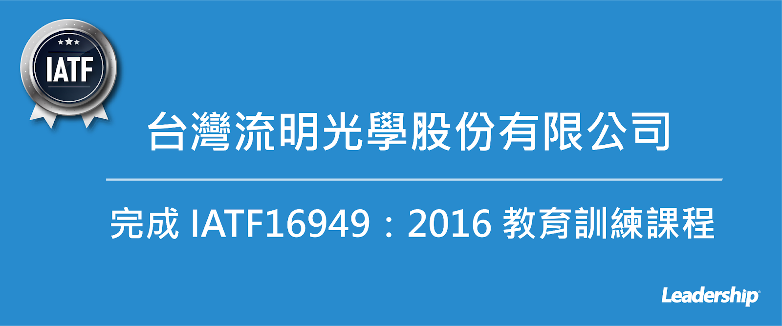 在領導力企管專業顧問輔導下,台灣流明光學股份有限公司已順利完成 IATF 16949:2016汽車品質管理系統標準(IATF 16949:2016 Automotive Quality Management Systems)教育訓練課程(Training)。