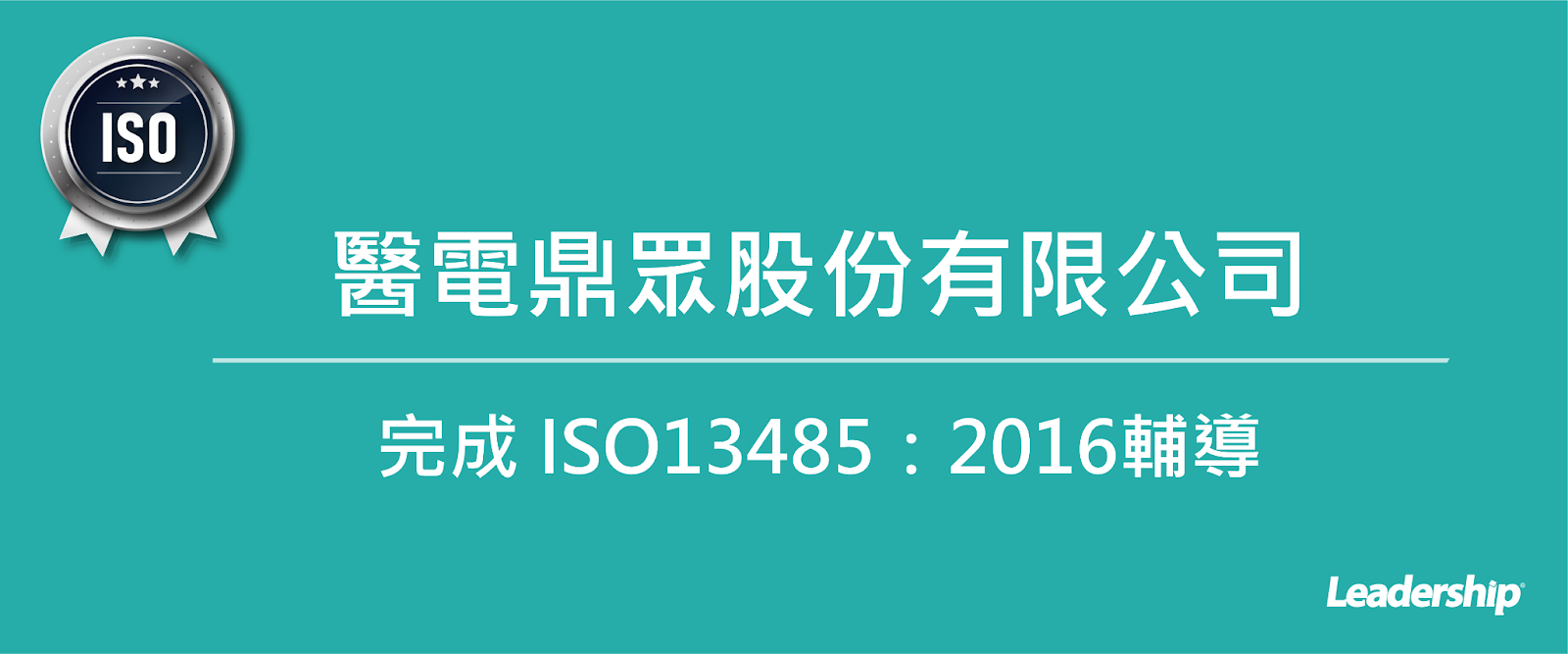 在領導力企管專業顧問輔導下,醫電鼎眾股份有限公司已順利完成 ISO 13485:2016醫療器材品質管理系統( ISO 13485:2016 Medical Devices - Quality Management Systems)輔導課程。