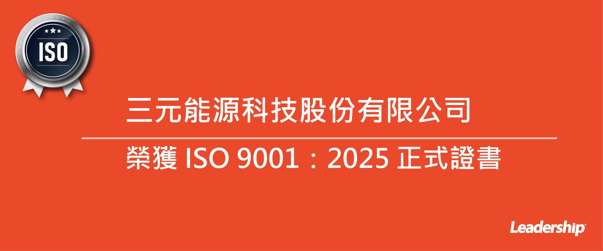 ▲恭喜三元能源科技股份有限公司 ISO 9001:2015 正式證書