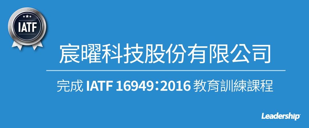 在領導力企管專業顧問輔導下,宸曜科技股份有限公司已順利完成 IATF 16949:2016汽車品質管理系統標準(IATF 16949:2016 Automotive Quality Management Systems)的教育訓練課程(Training)。