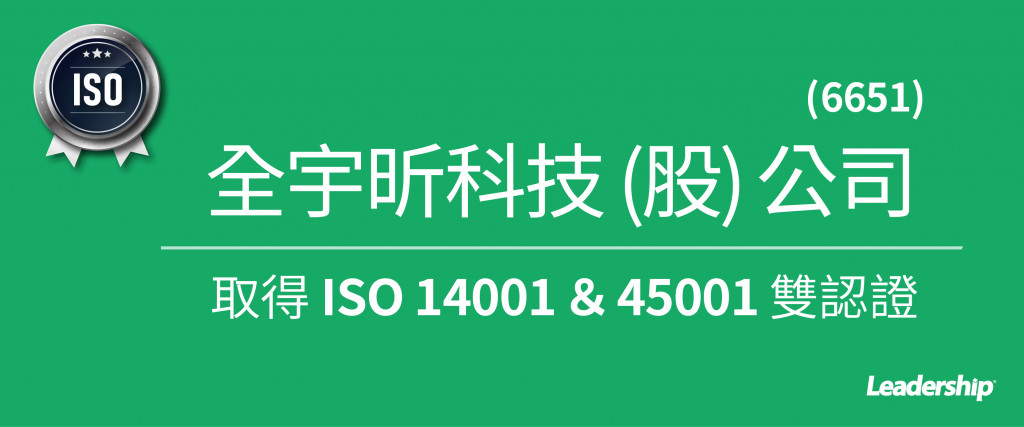 ▼ 恭喜全宇昕本次取得 ISO 14001 & ISO 45001 雙認證