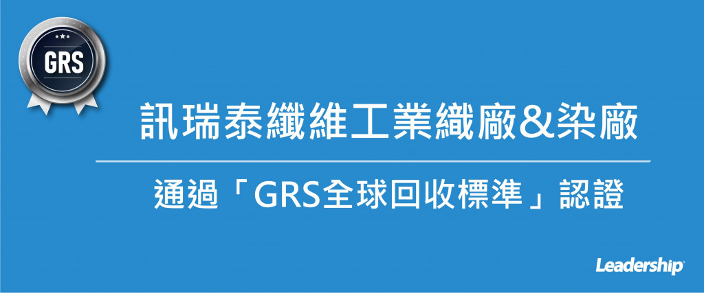 在領導力企管專業顧問輔導下,瑞泰纖維工業股份有限公司位於桃園的織廠、染廠雙雙順利完成 GRS全球回收標準 ( Global Recycled Standard ) 的教育訓練(Training)、系統建置(Implementing)、外部稽核驗證 (Certification)3大實施流程,並順利取得 GRS 證書。