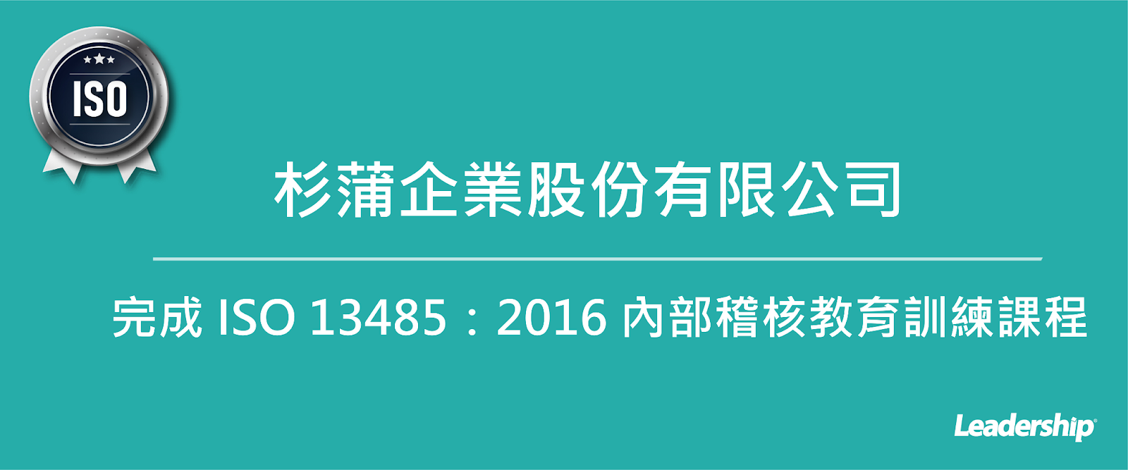 在領導力企管專業顧問輔導下,杉蒲企業股份有限公司已順利完成 ISO 13485:2016醫療器材品質管理系統( ISO 13485:2016 Medical Devices - Quality Management Systems)內部稽核教育訓練課程。