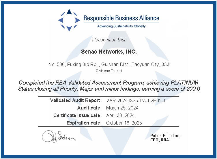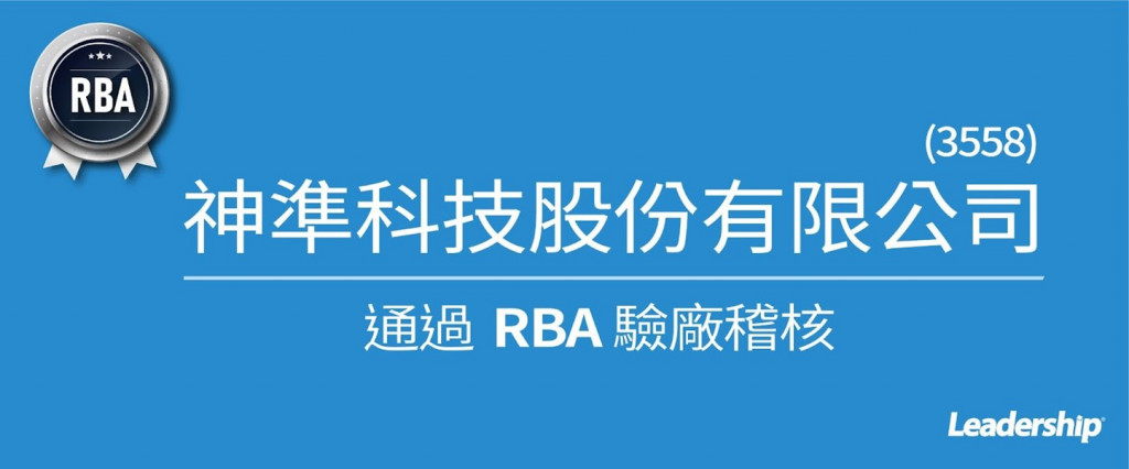 在領導力企管的專業輔導下,神準科技股份有限公司完成 RBA 7.0責任商業聯盟行為準則(舊稱EICC) VAP稽核,並榮獲 200 分滿分「鉑金級」RBA 認證。 在正式 VAP稽核前,神準科技在企業社會責任已投入大量心力與努力,在勞工(labor)、健康與安全(Health & Safety)、環境(Environmental)、倫理規範(Ethics)、管理系統(Management System)五大面向陸續建立、執行管理制度,充分展現其對永續經營與社會責任的高度承諾。