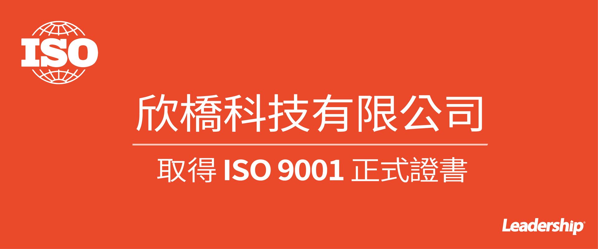 ▼ 欣橋科技 榮獲 ISO 9001 證書