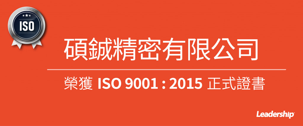 ▲恭喜碩鋮精密取得 ISO 9001:2015 正式證書恭喜碩鋮精密取得 ISO 9001:2015 正式證書