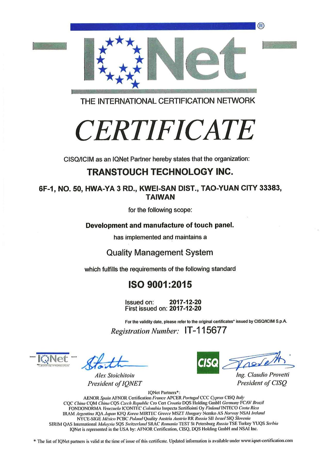 在領導力企管專業顧問輔導下,富晶通科技股份有限公司已順利完成 ISO 9001:2015 品質管理系統及 IATF 16949:2016 汽車業品質管理系統、ISO 13485:2016 醫療器材品質管理系統、AS9100 航空業品質管理系統,教育訓練(Training)、系統建置(Implementing)、外部稽核驗證 (Certification)3大實施流程,並且榮獲 IATF 16949:2016、ISO13485:2016 、ISO 9001:2015 及 AS 9100:2016 品質管理系統新版證書。