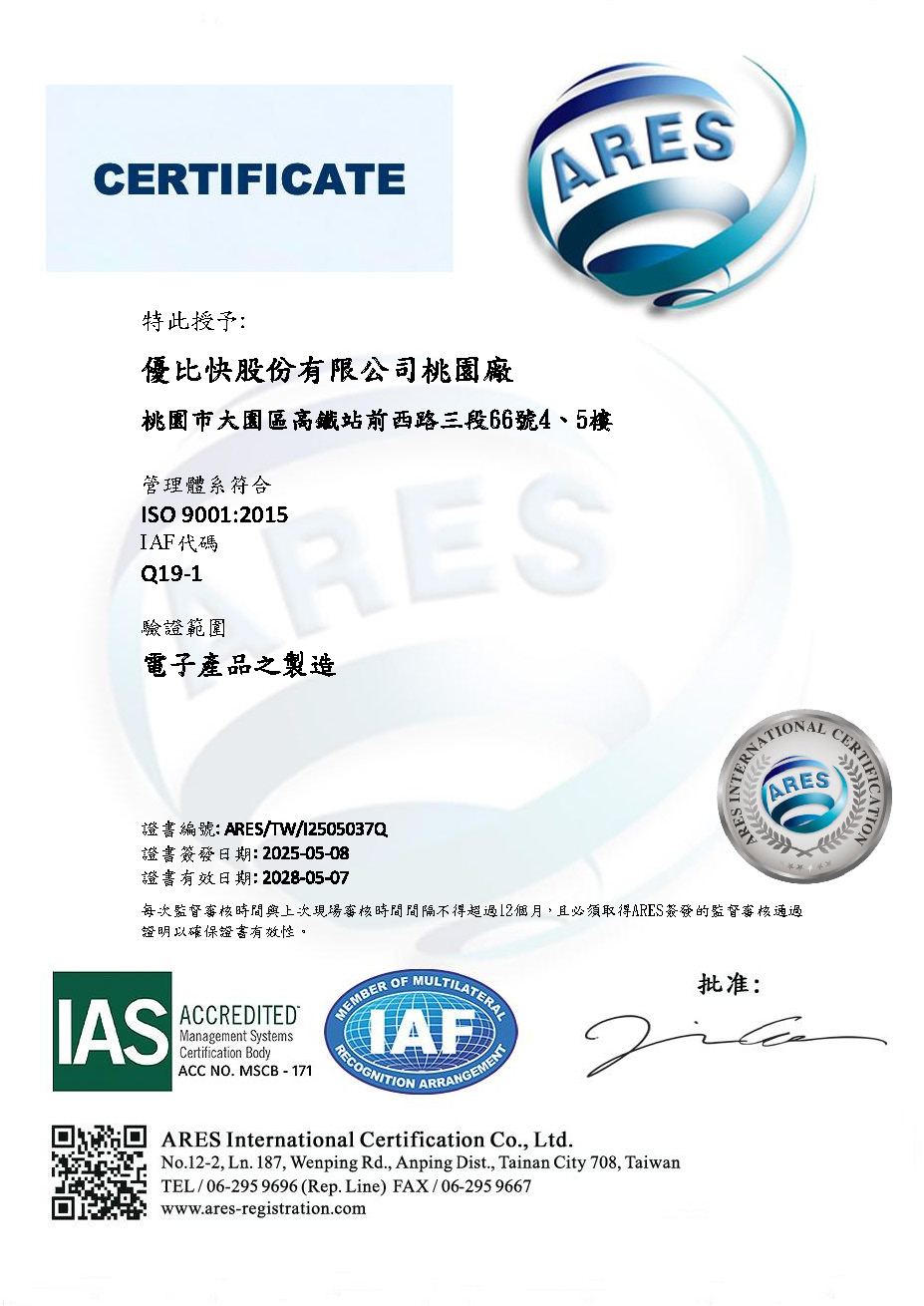 ▲ 恭喜優比快成功取得 ISO 9001 證書