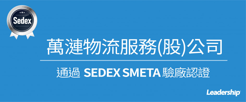 萬漣物流在領導力企管協助下,已順利完成 SEDEX SMETA Pillar 4 模擬稽核輔導,未更落實企業社會責任與關懷。本次導入 SEDEX SMETA 驗廠,為勞動人權、員工工作安全、環境保護等面向盡一份心力,並順利通過第三發公證單位評核,順利取得 SEDEX SMETA 驗廠認證!