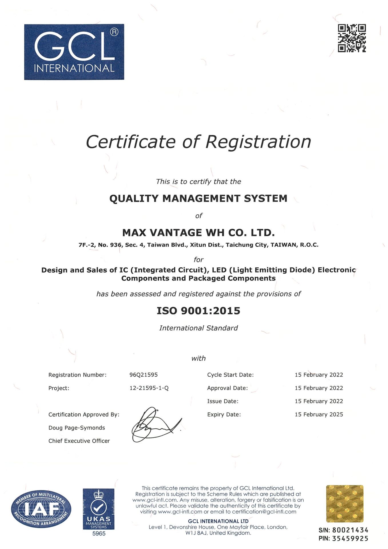 在領導力企管專業顧問輔導下,旺泓有限公司已順利完成 ISO 9001:2015 系統(ISO 9001:2015 Quality Management Systems)教育訓練(Training)、系統建置(Implementing)、外部稽核驗證 (Certification)3大實施流程,順利取得 ISO 9001:2015證書且通過續評。