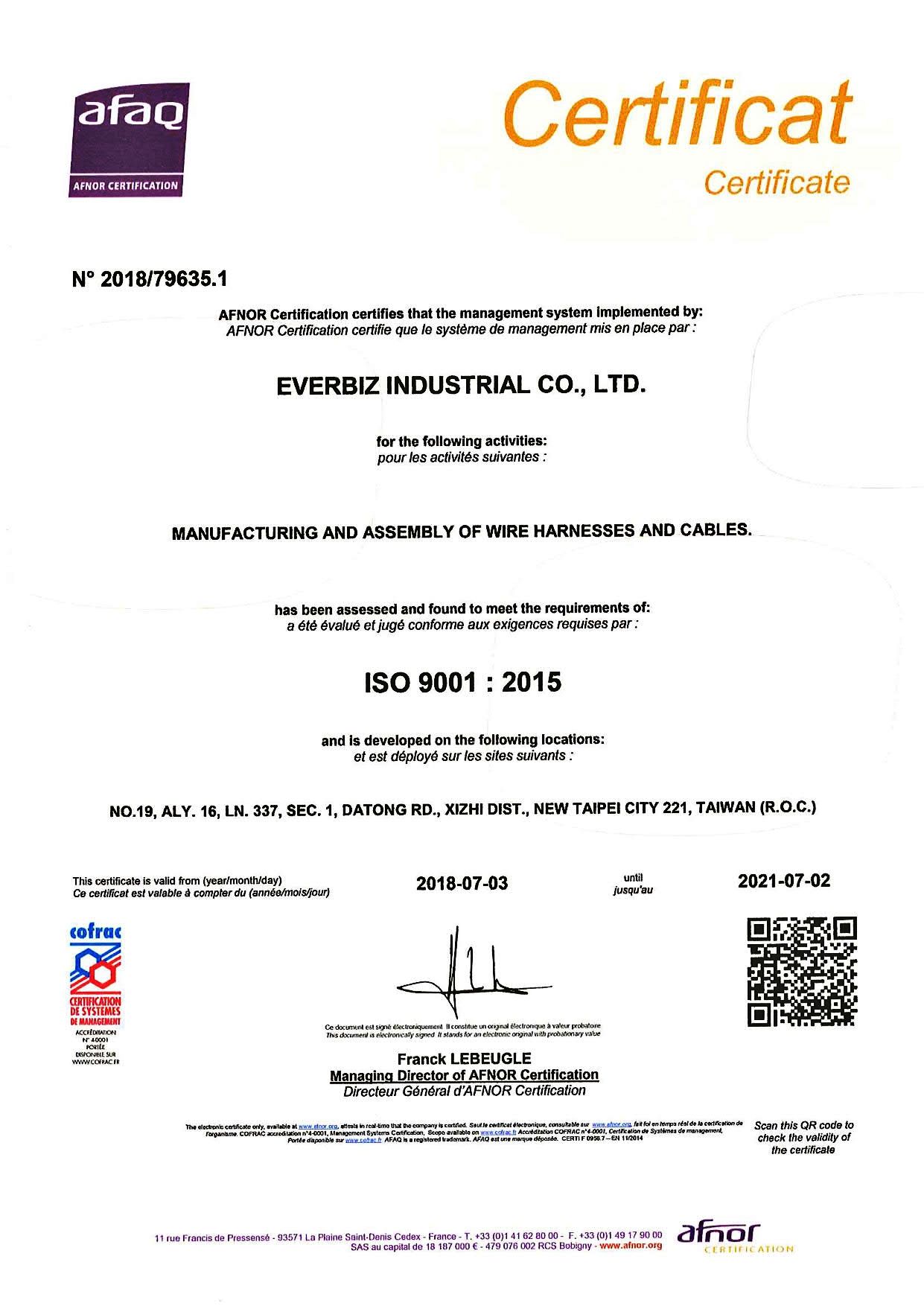 在領導力企管專業顧問輔導下,新呈工業股份有限公司已順利完成 IATF 16949:2016 (汽車品質管理系統標準(IATF 16949:2016 Automotive Quality Management Systems)及 AS 9100 航空品質管理系統 ( AS 9100 Quality Management Systems - Requirements for Aviation, Space and Defense Organizations) 教育訓練(Training)、系統建置(Implementing)、外部稽核驗證 (Certification)3大實施流程,並且榮獲 AFNOR IATF 16949:2016 & AS 9100 汽車品質管理系統新版證書。