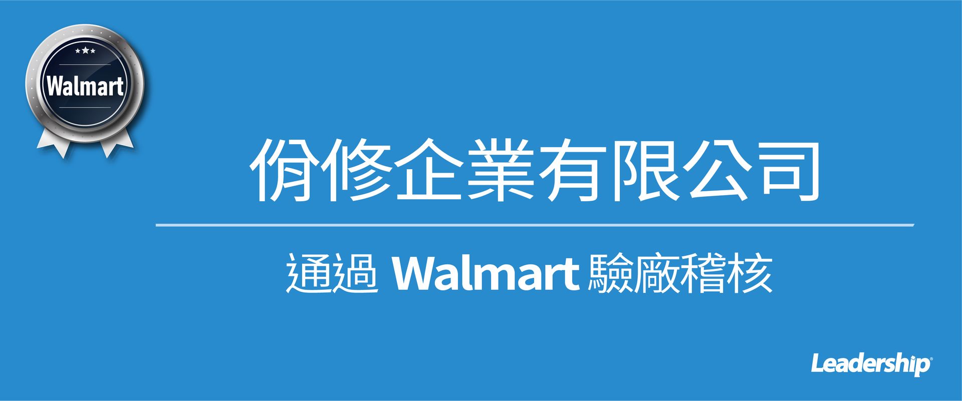 在領導力企管專業顧問輔導下,佾修企業有限公司已順利完成 WalMart 驗廠(WalMart Stores, Inc. Standards for Suppliers Manual)之教育訓練(Training)、系統建置(Implementing)、外部稽核驗證(Certification)3 大實施流程,順利通過社會責任驗廠並且取得 Walmart 交易資格。