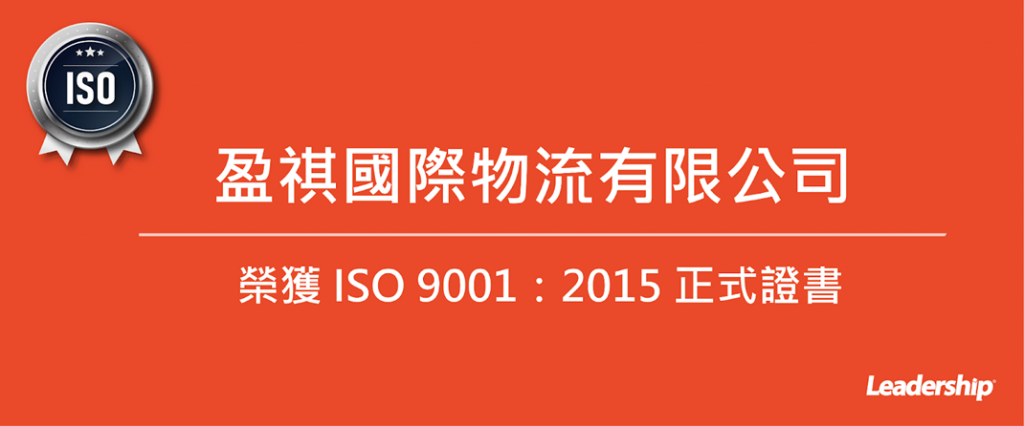 在領導力企管專業顧問輔導下,盈祺國際物流有限公司 已順利完成 ISO 9001:2015 品質管理系統(ISO 9001 :2015 Quality Management Systems)的教育訓練(Training)、系統建置(Implementing)、外部稽核驗證(Certification)3 大實施流程,並且榮獲 ISO 9001 :2015 品質管理系統新版證書。