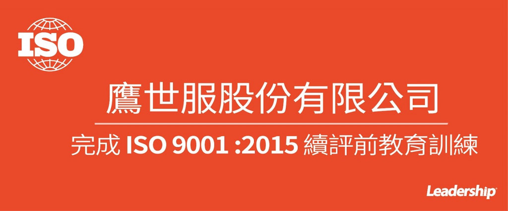 在領導力企管專業顧問輔導下,鷹世服股份有限公司已順利完成 ISO 9001:2015 續評前教育訓練輔導 (Training)。