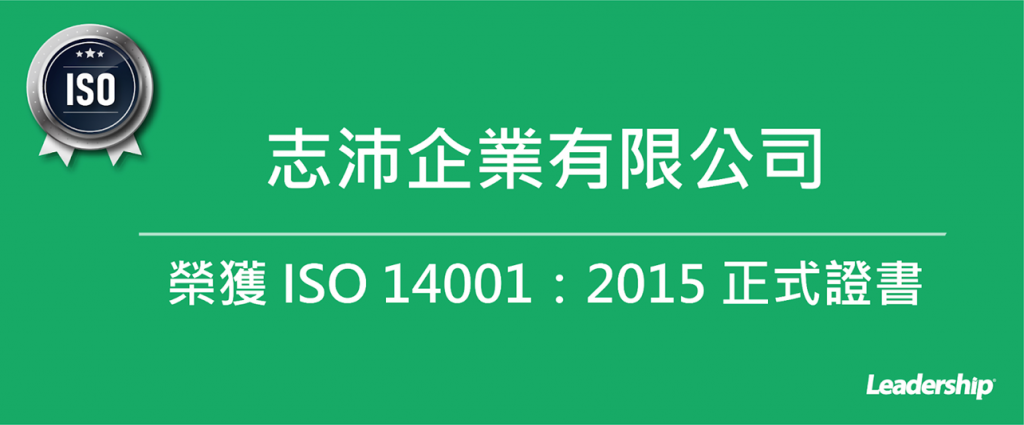 在領導力企管專業顧問輔導下,志沛企業有限公司已順利完成 ISO 14001:2015 環境管理系統(ISO 14001:2015 Environmental management systems)教育訓練(Training)、系統建置(Implementing)、外部稽核驗證 (Certification)3大實施流程,並且榮獲 ISO 14001 環境管理系統正式證書。