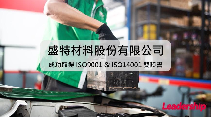 ▲恭喜盛特材料取得ISO9001 & ISO14001 雙證書