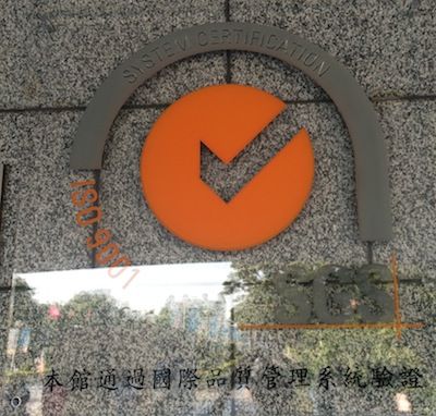 ▲科工館大門,懸掛通過 ISO 9001 告示牌。