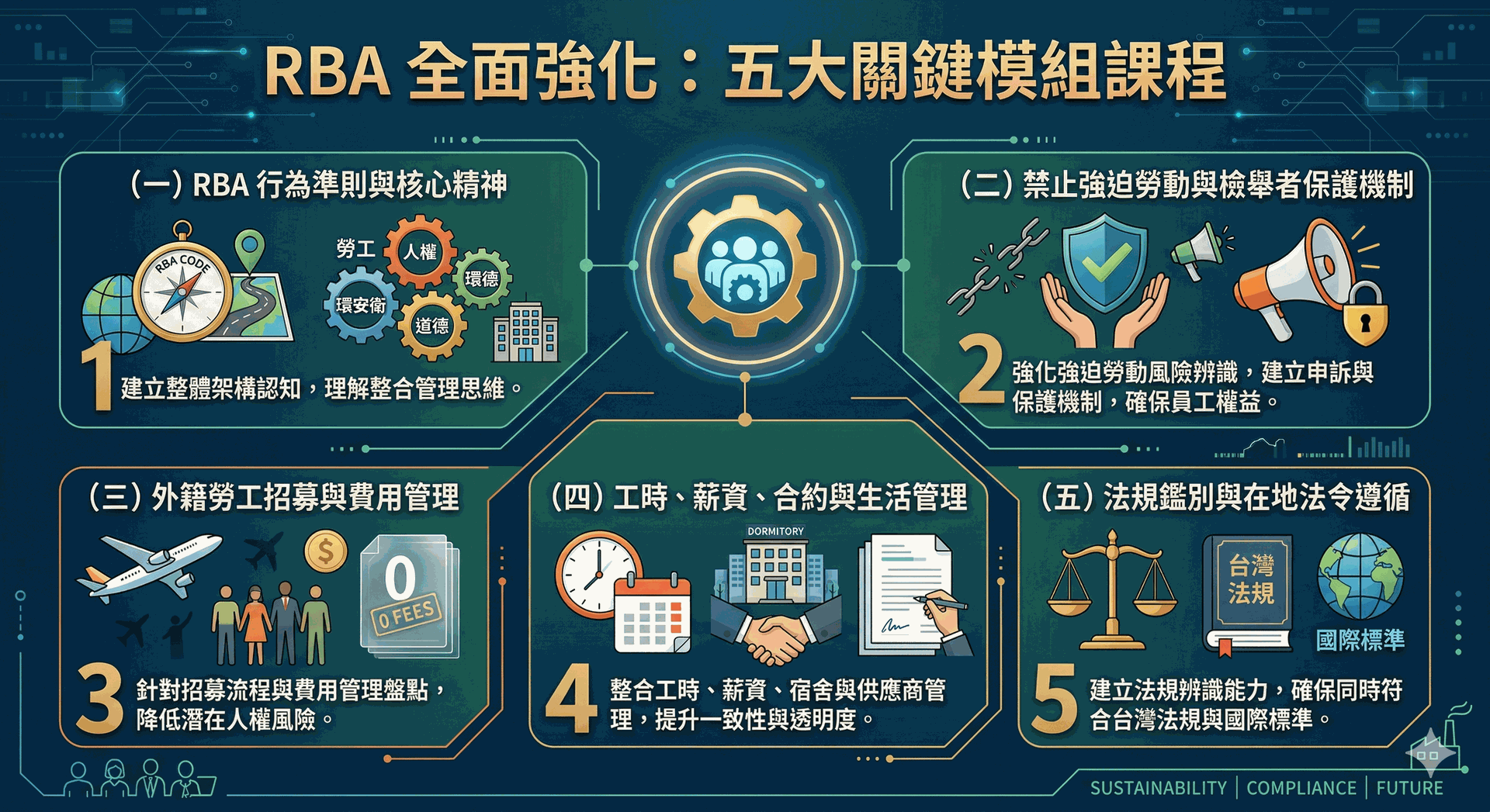 在全球供應鏈日益重視ESG與人權治理的趨勢下,企業對於服務型供應商的要求已從「合法合規」提升至「符合國際責任商業標準」。特別是人力仲介產業,因直接涉及勞動條件與招募倫理,已成為責任商業聯盟(RBA)重點關注的對象之一。指標性人力仲介公司-萬通國際人力開發股份有限公司(以下簡稱萬通人力),為強化企業治理與國際接軌能力,特別邀請領導力企管RBA顧問師Chris,導入RBA Indirect Spend Validated Assessment Program課程。透過系統化培訓與實務導向輔導,成功建立符合國際標準的管理基礎,展現企業對「信任」與「責任」的高度承諾。
