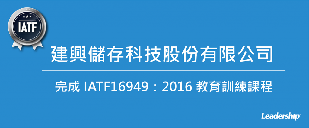 在領導力企管專業顧問輔導下,建興儲存科技股份有限公司 已順利完成 IATF16949:2016 汽車業品質管理系統(IATF 16949:2016 Automative Quality Management System Standard)教育訓練課程(Training)。