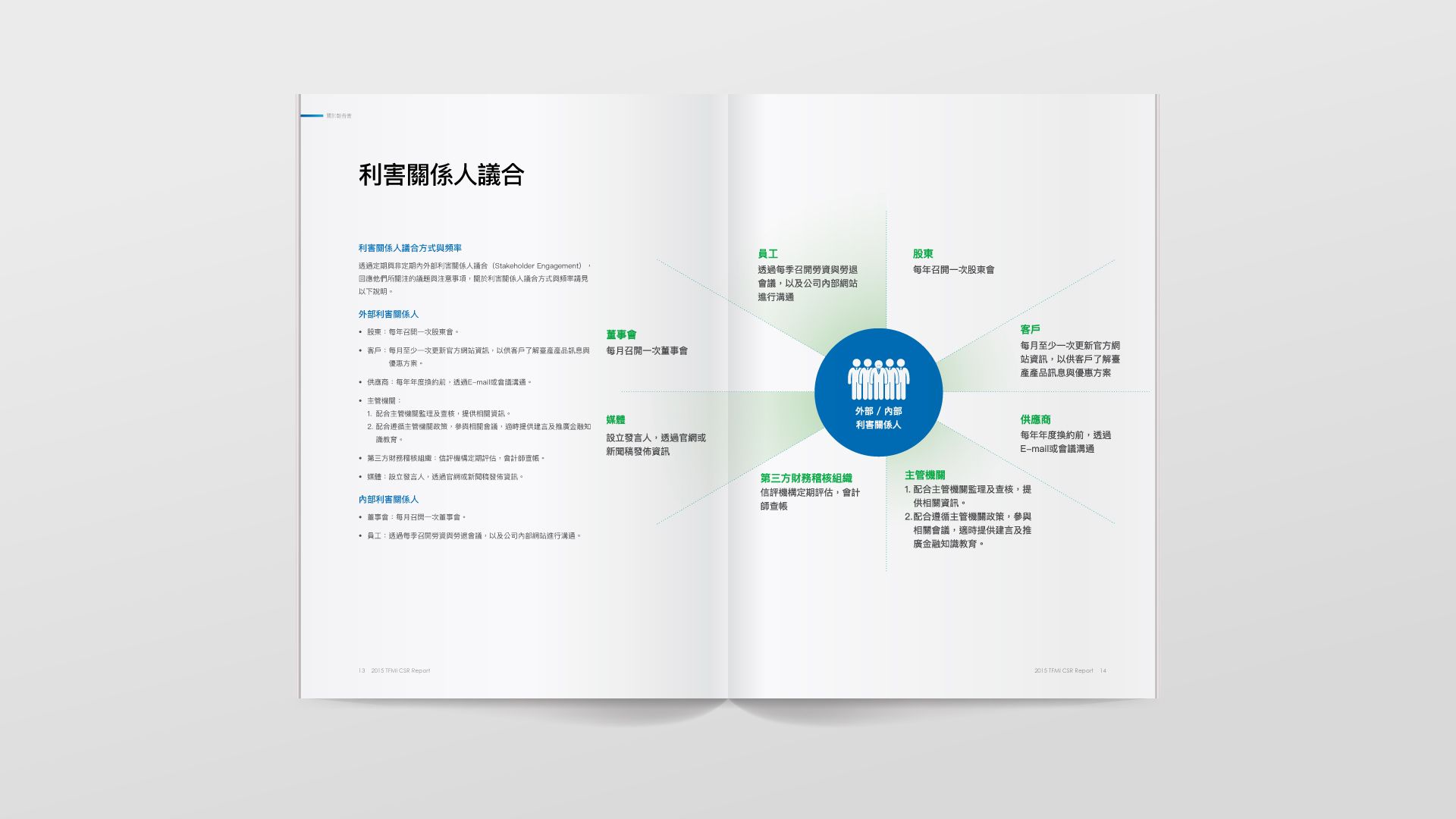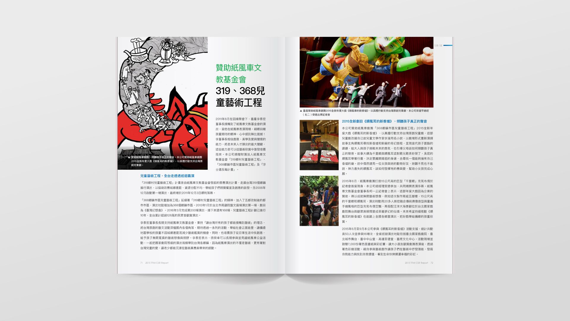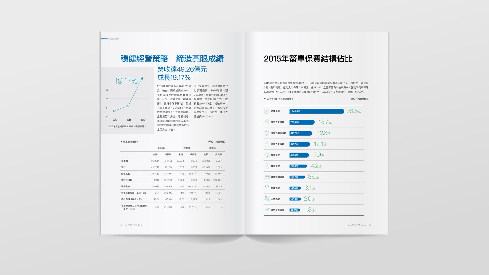 連小學生都聽過這句話:「1張圖片勝過千言萬語。」然而在企業社會責任報告書實際執行而言,難度非常高,主因就在跨部門資訊蒐集不易,通常都是等到逼近截稿時間時才陸續交給承辦窗口,面對截稿在即,能夠把正確資訊呈現就已不易,更遑論達到圖文精美的版面設計。也因如此,我們常在國內企業的報告書或企業年報裡,看到充滿密密麻麻文字,或是很傳統的版型設計。為了讓國內企業的報告書能媲美歐美頂尖外商公司,領導力企管引進一批影像製作團隊,採用資訊圖表(inforgraphic)視覺設計手法,為客戶執行報告書版面編排。什麼是資訊圖表設計?簡單來說,就是採用圖片大於文字的設計手法呈現訊息。然而,以同樣1個跨頁的版面來說,資訊圖表的製作時間相較於一般版型設計,所花費的時間長達3倍以上!這是由於資訊圖表必須由文案團隊消化文字內容,再交由視覺編輯團隊繪製腳本(script),然後請攝影團隊拍攝圖片,透過一連串事前精密的企劃,最後一站才送交設計團隊著手排版。事實上,這幾乎是拍攝電視廣告甚至微電影影像作品才有的工序。領導力企管專案經理王聖源說:我們的製作團隊都是來自外商廣告公司的高手,對於製作出媲美國際級企業的作品深具信心,我們甚至用拍電影的製作流程來協助企業編製報告書。這是因為我們也很希望把國外的設計趨勢與標準製程引進國內,讓國內的企業社會責任報告書水準也能和國外一較高下。歡迎下載 臺灣產物保險2015企業社會責任報告書,瞭解更多關於臺產的企業社會責任實踐的諸多措施與成果。歡迎下載 臺灣產物保險2015企業社會責任報告書,瞭解更多關於臺產的企業社會責任實踐的諸多措施與成果。