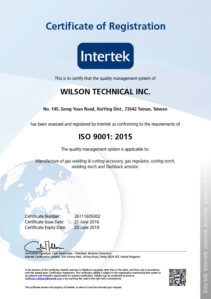 在領導力企管專業顧問輔導下,威舜股份有限公司已順利完成 ISO 9001:2015 品質管理系統(ISO 9001:2015 Quality Management Systems) 教育訓練(Training)、系統建置(Implementing)、外部稽核驗證 (Certification)3大實施流程,並且榮獲 Intertek 頒發 ISO 9001:2015 品質管理系統新版證書。威舜股份有限公司,原為「順弘科技工業有限公司」,於2014年正式更名為「威舜股份有限公司」,主要營業項目為:氣焊相關配件、氣體調節閥、切斷器、熔接器及補火器的製造與販售,近年來積極參加國外大小展覽,在機械儀器市場上有很好的表現。威舜自創立以來,秉持著「精益求精」的理念努力的經營,更在2016年5月由透過領導力企管協助,正式通過 ISO 9001 品質管理系統稽核,期望在系統化管理的幫助下,讓公司的體質更加健全完備,也能夠使產品和服務的品質更符合國際市場標準及客戶的需求。