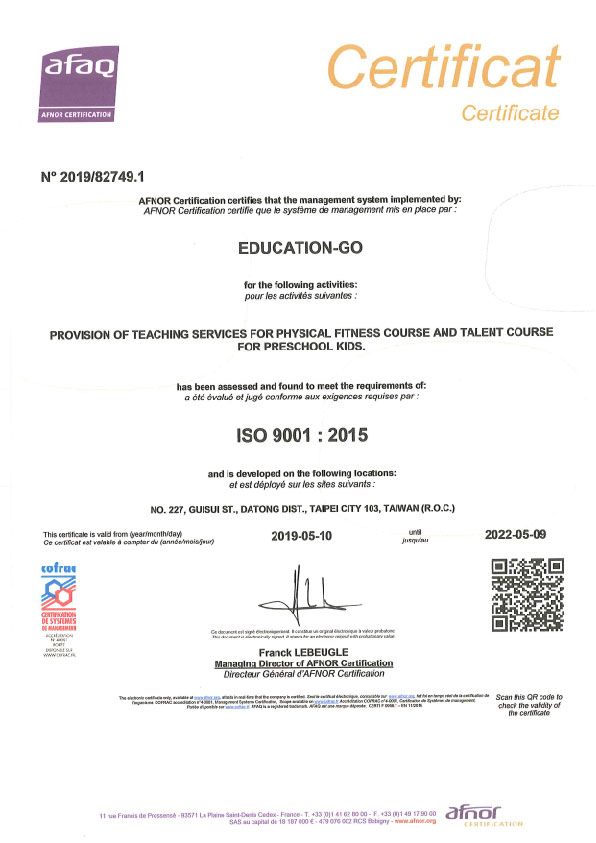 異果工作室透過領導力企管協助,正式通過 ISO 9001 :2015品質管理系統稽核,是少數在教育服務業界取得 ISO 9001認證證書,為此導入 ISO 9001不只是建立管理系統,更能夠改善流程、降低組織風險,除了提供更優質的產品與專業的服務,更成為客戶長期信賴的合作夥伴,因此維持一貫的服務品質是長遠經營的關鍵 ,而現今台灣有不少中小企業的崛起,ISO 9001品質管理系統是企業量身打造的管理系統的最佳指引。