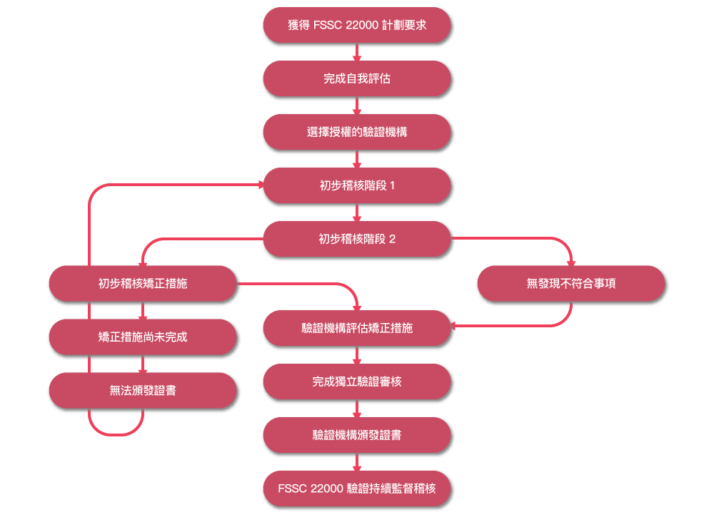 擁有 ISO 22000認證的食品製造商,只要選擇適用於行業別的前提方案(PRPs),以及滿足 FSSC 22000的要求後,通過 GFSI的認可後便可將證書轉換成 FSSC 22000。