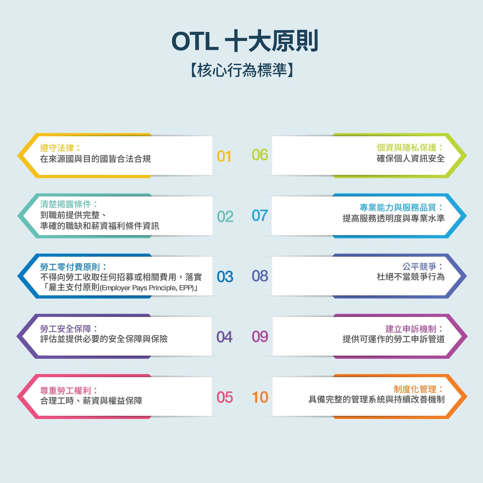 OTL 標準以 10 大條款建立具體實務要求,可作為企業內部政策或第三方審核的依據,包括: